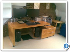 During a more ample project, we found time to make this desk. Our client wishes was to have a child proof access to the computer's front panel. We suggested a bespoke desk and this was the results.
