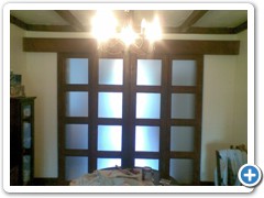 Bespoke sliding doors. Our client wanted a technical solution to exclude any guide rails on the floor. Obviously, the door design was planned to fit with the rest of the house joinery. By the way, the property also was previously refurbished by us.